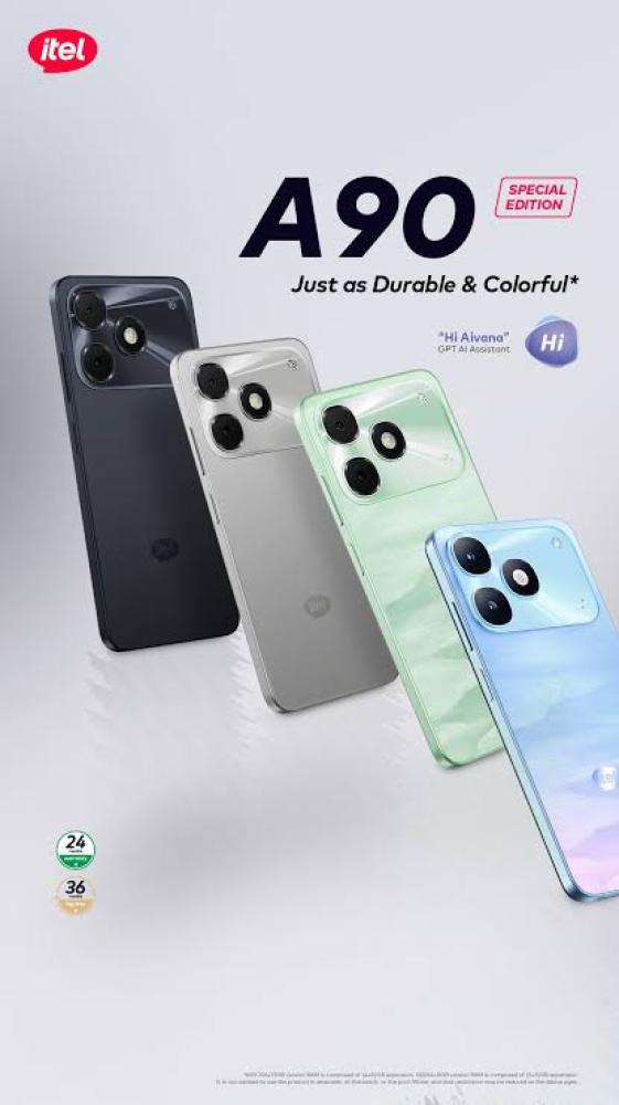 هاتف آيتل A90 إصدار 128 جيجابايت (Special Edition) هو هاتف ذكي يقدم شاشة كبيرة بحجم 6.6 بوصة، معالجUnisoc T7100 ثماني النواة، وذاكرة تخزين داخلية 128 جيجابايت مع ذاكرة وصول عشوائي (RAM) تصل إلى 8 جيجابايت (3 جيجابايت فعلية و5 جيجابايت افتراضية)، بالإضافة إلى بطارية بسعة 5000 مللي أمبير تدعم الشحن السريع بقوة 15 واط، وكاميرا رئيسية بدقة 13 ميجابكسل.