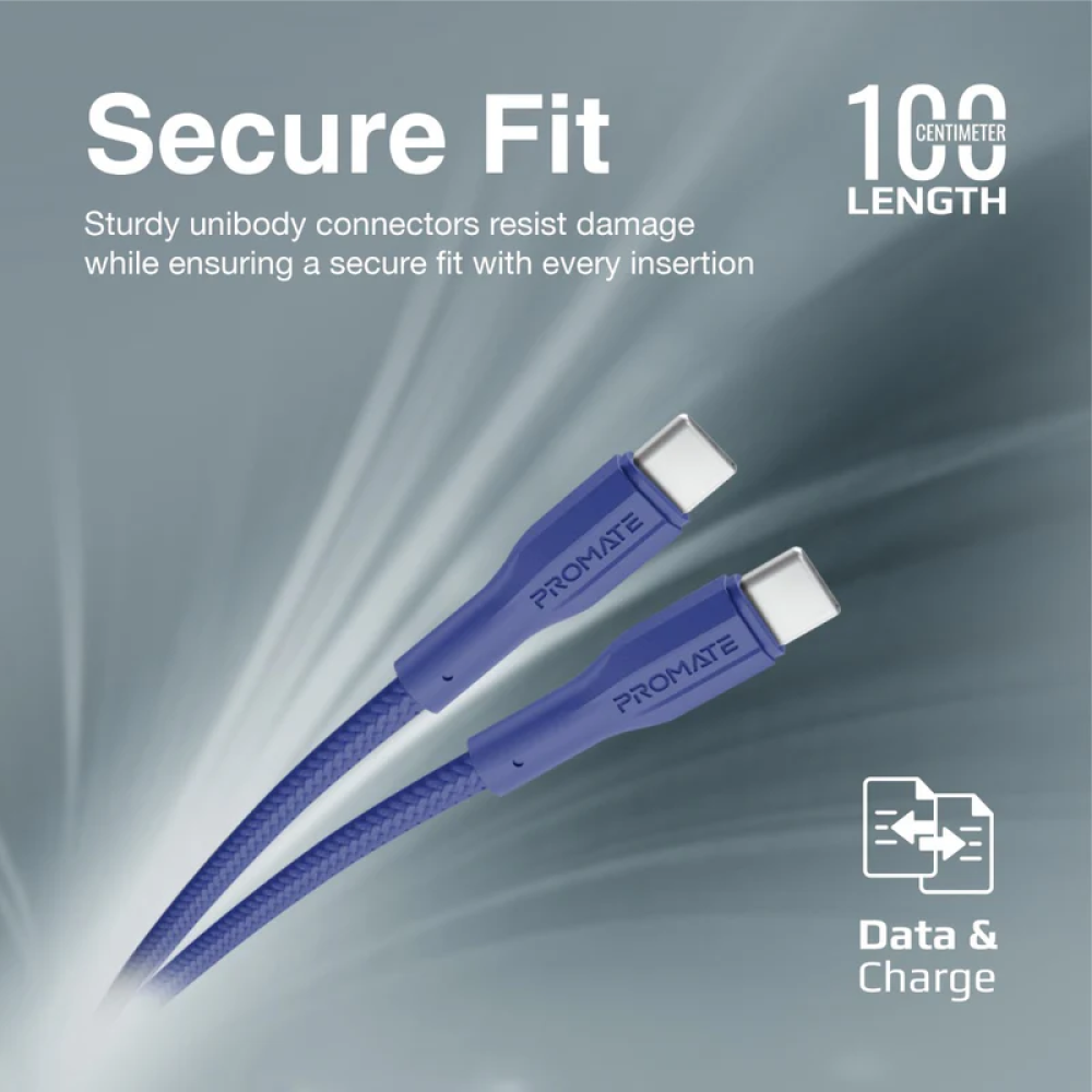 كل جزء من كابل Promate XCord-CC مصمم لتعزيز المتانة والموثوقية، بالإضافة إلى الشحن السريع. يمكنك توصيل الأجهزة والمحوّلات التي تعمل بمنفذ USB-C™ بهواتفك الذكية، الأجهزة اللوحية أو الحواسيب المحمولة.