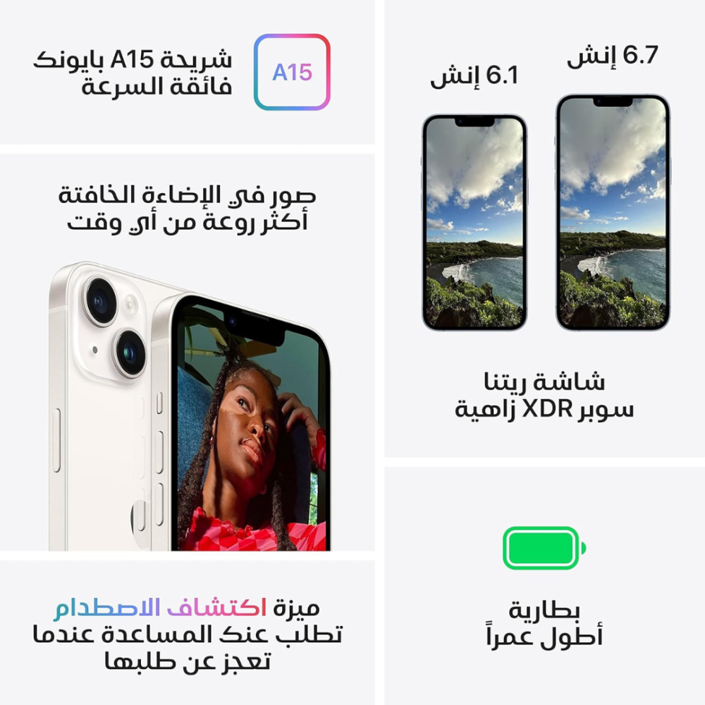 🟡 ايفون 14 الجديد من أبل – سعة 128 جيجابايت – اللون الأزرق